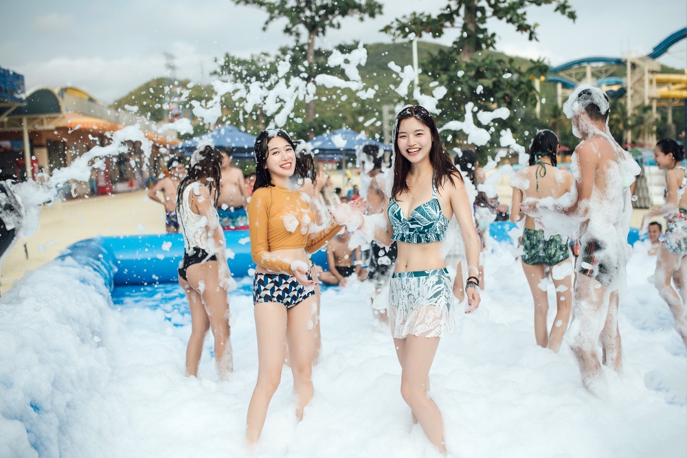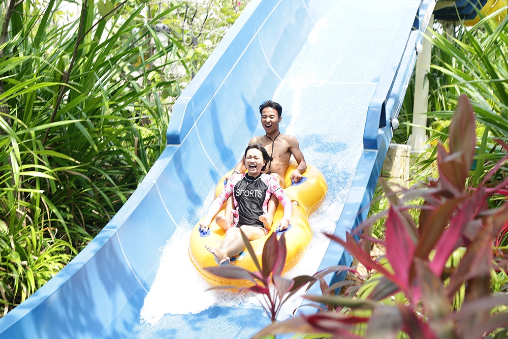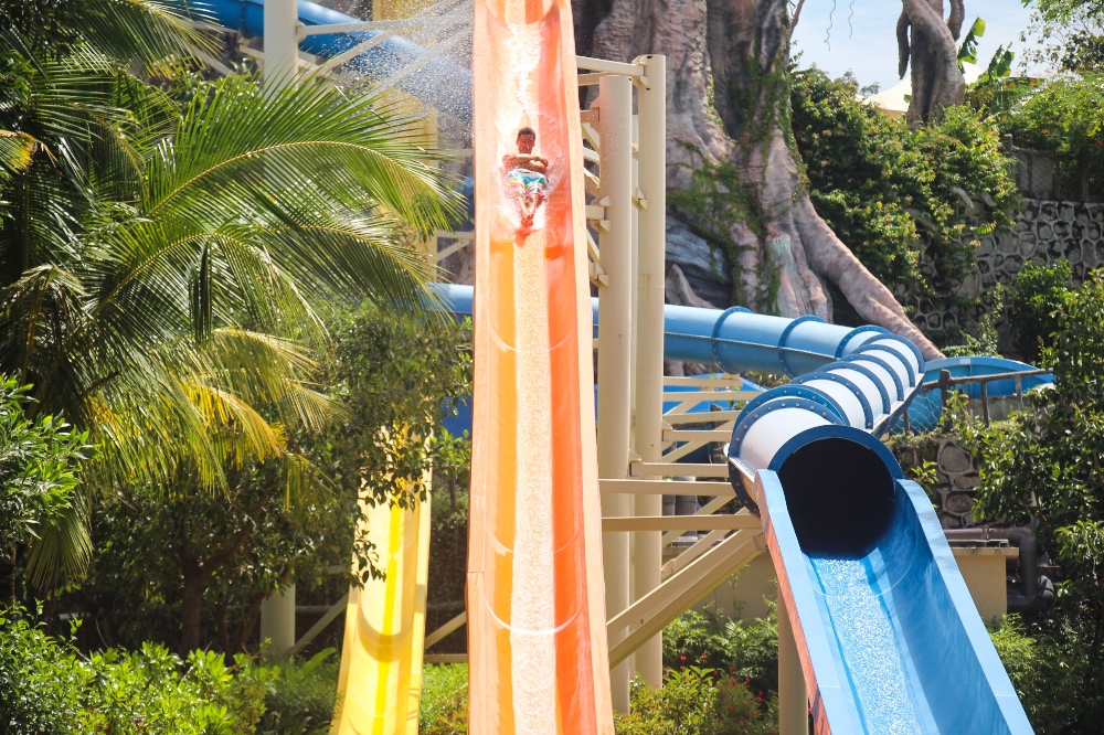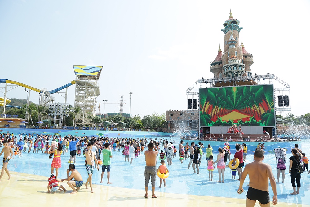 樂園目前配備12套大型游樂設施,近百條戲水滑道。其中包括垂直距離高達28米、下滑角度70°的國內(nèi)頂尖心跳滑道——尖峰時速;長達1350米、詮釋雨林故事的休閑漂流項目——雨林漂流;面積16000平方米、海嘯浪可高達3米的造浪池項目——颶風海嘯及歡樂海岸;被稱之為“亞洲奇跡“的長280米的超長水上過山車——水上飛龍。