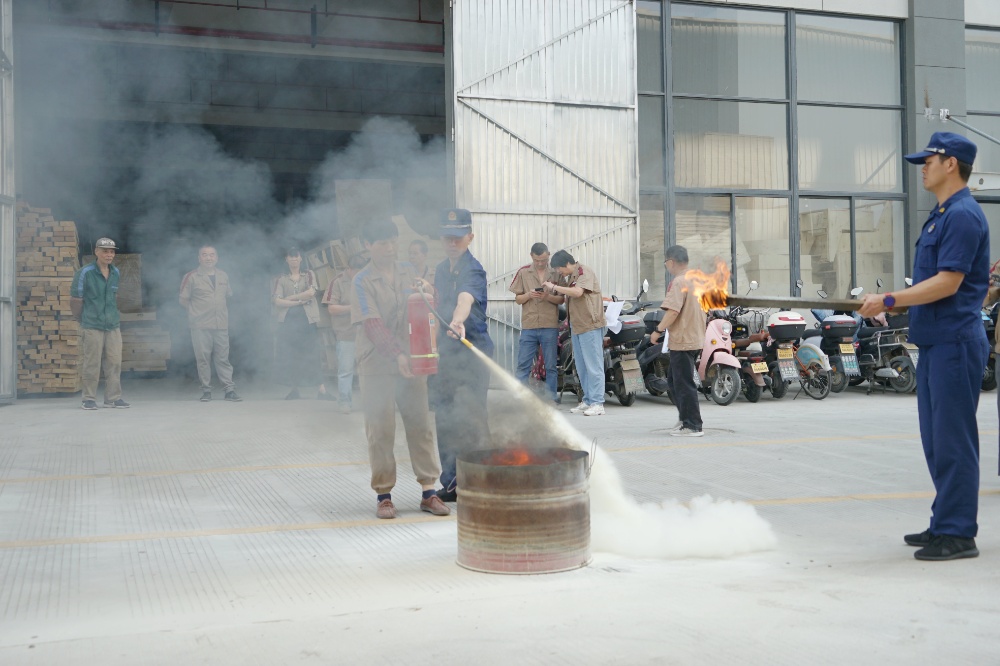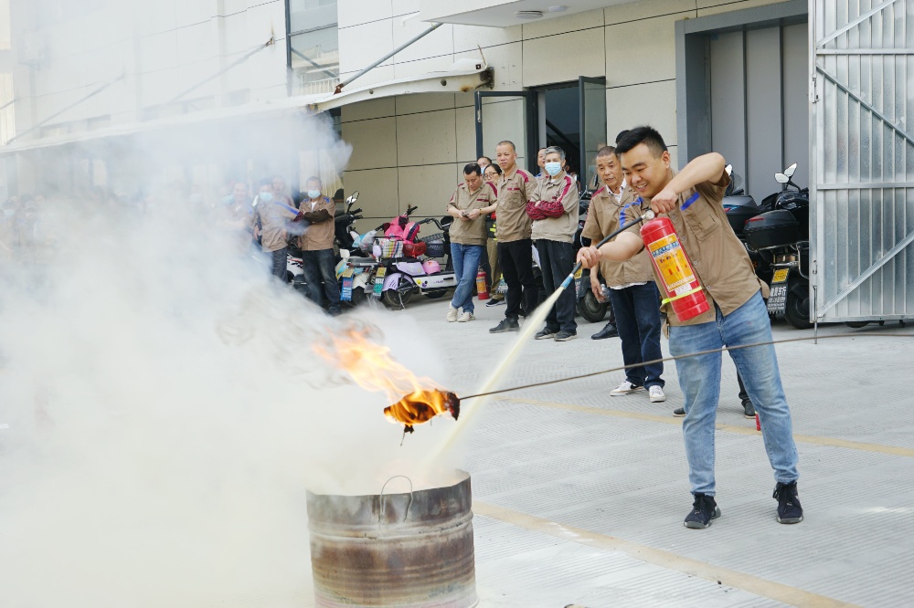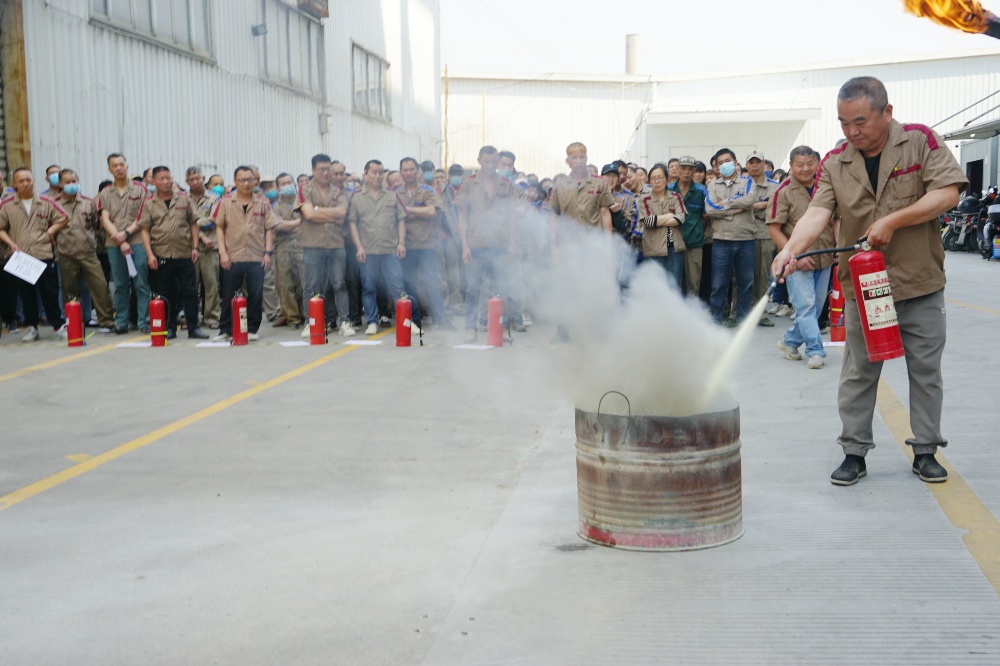首先由車間主任、班組長(zhǎng)等進(jìn)行操作示范,隨后由新員工們輪流使用滅火器訓(xùn)練,對(duì)不當(dāng)操作進(jìn)行現(xiàn)場(chǎng)糾正,力求使公司每位員工都能熟練掌握滅火技能。