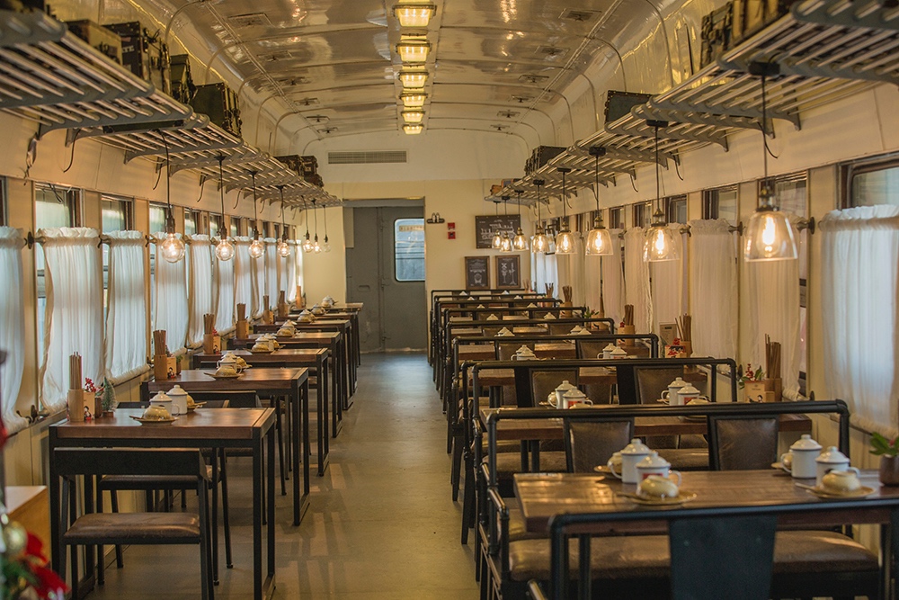 東方紅火車主題酒店由3列27節(jié)綠皮火車車廂組成,來自長春、沈陽等北方城市的綠皮火車經(jīng)過著名設(shè)計(jì)師的改造已經(jīng)成了國內(nèi)為數(shù)不多的火車主題酒店,一共73間火車客房和1個(gè)火車餐廳。酒店以橫鋼50年代金千鐵路舊址作為切入點(diǎn),利用火車枕木鋪設(shè)人行游步道,結(jié)合溫泉,形成了真正的VIP溫泉客房。走進(jìn)綠皮火車,你會(huì)發(fā)現(xiàn)原先的車廂已經(jīng)被很好地設(shè)計(jì)成了宜居的客房,書桌、衛(wèi)生間、電視、暖氣一應(yīng)俱全,還能在墻上看到年代感的背包/水壺/帽子的裝飾。