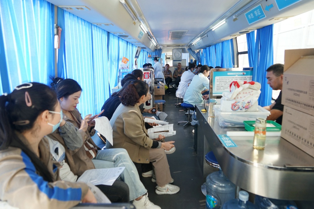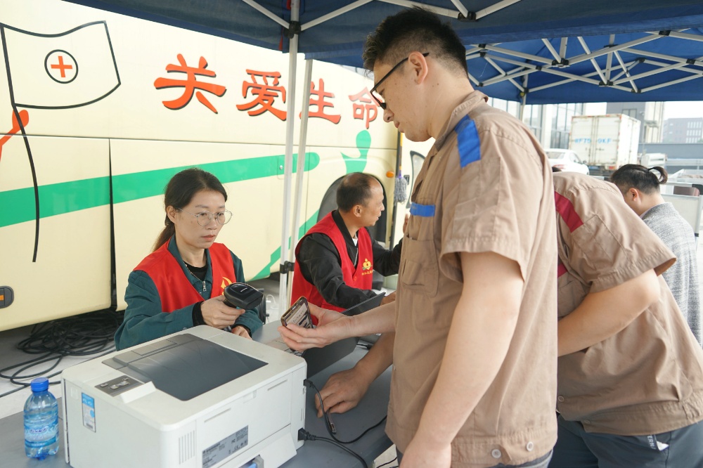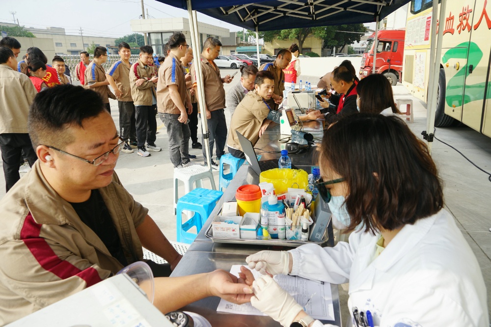 當(dāng)天上午,整個廠區(qū)洋溢著愛的暖流。只見大家在采血車前有序填寫獻(xiàn)血登記表、測量血壓、征詢體檢、初篩采樣。隨后合格者上車獻(xiàn)血,奉獻(xiàn)愛心。